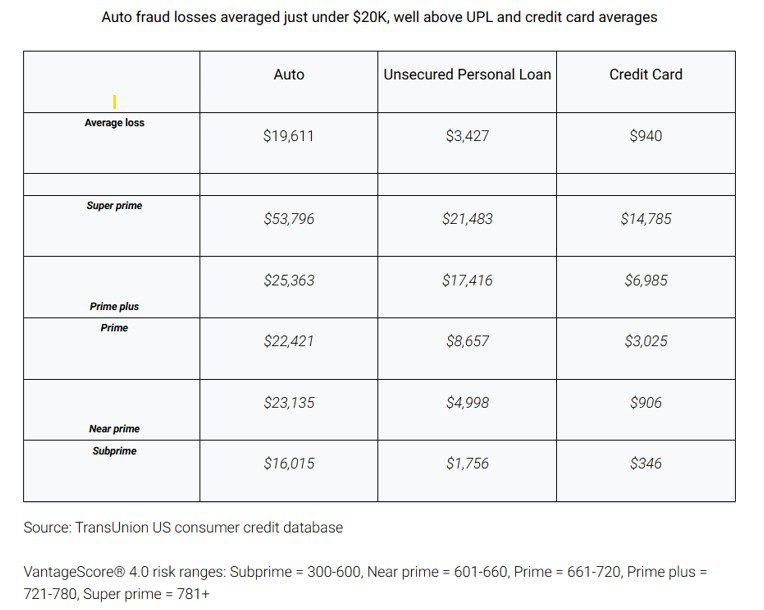 Auto fraud losses averaged just under $20K, well above UPL and credit card averages